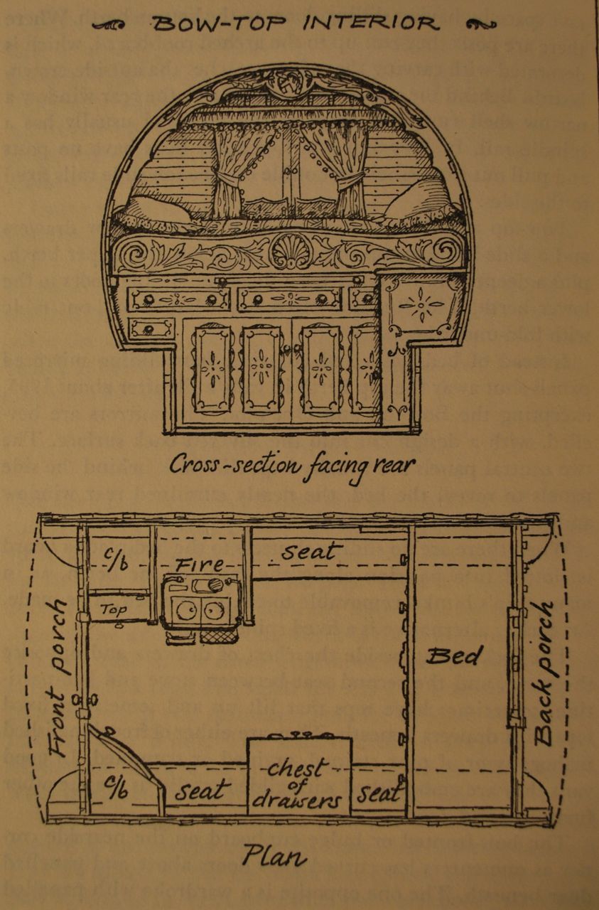 The evolution into the Bow Top shows more storage and less room for seating but also the ability to cook inside and more dedicated storage.  It should be taken into consideration that wagon dwellers in the 19th and 20th century Europe generally slept outdoors unless in all but the worst conditions.  The wagons were safe havens to keep your possessions and children whereas adults slept under the stars or occasionally in tents.