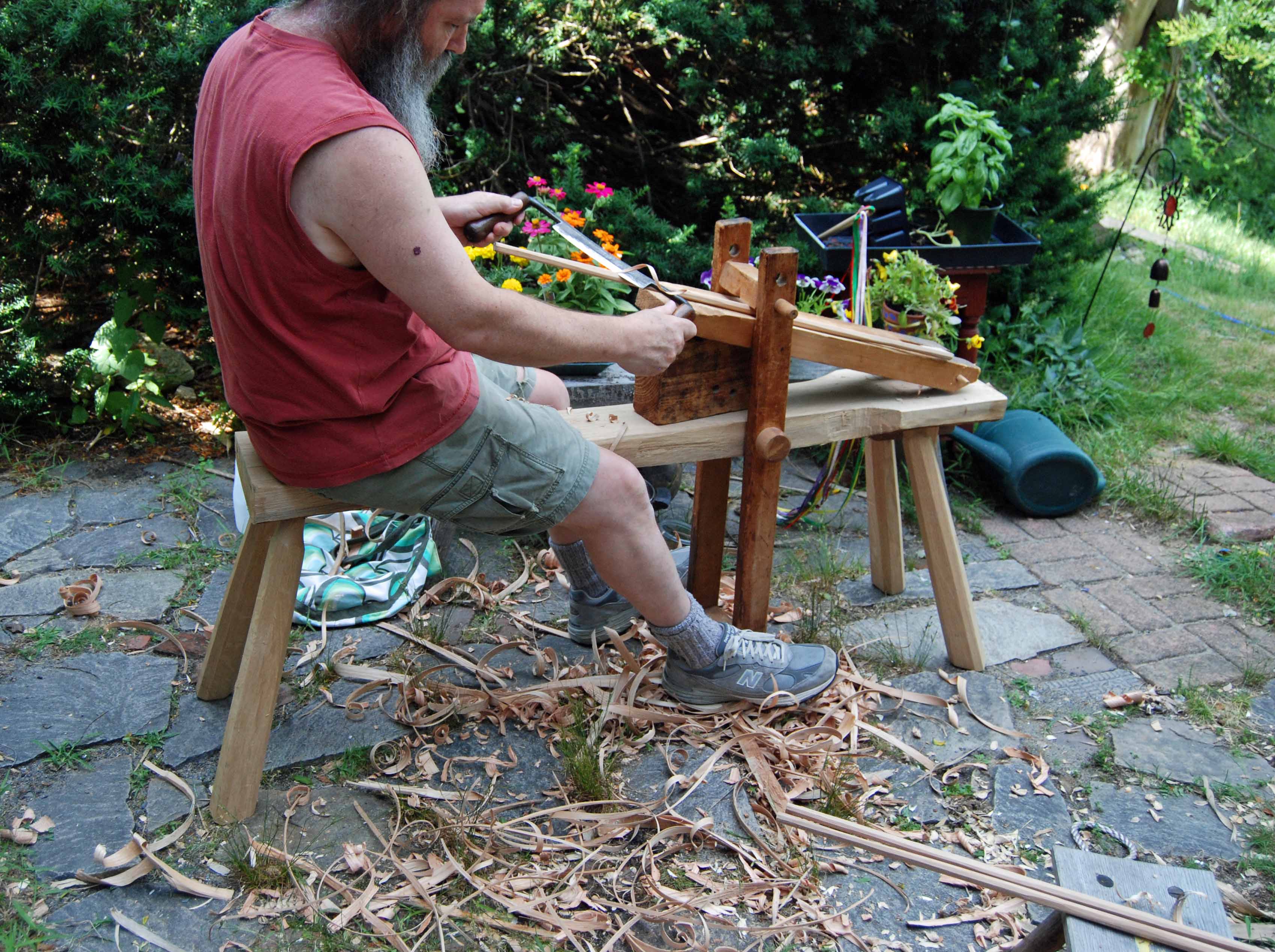 I haven’t made one of these in over 20 years – a phrase you’ll get sick of hearing here. I’m preparing to head north for the Lie-Nielsen Open House – and have lots to do. On my list was a brief woodworking project. The other day I had shown a shot of me at a shaving horse, making long thin hickory bits.
