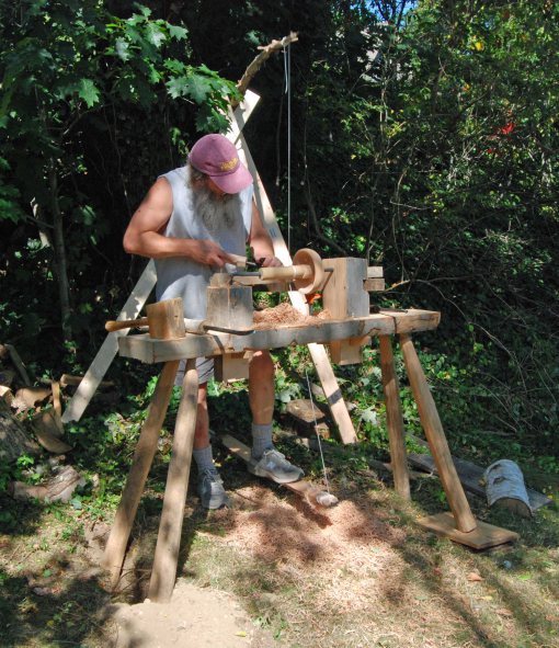 I think I first saw this style of lathe in the book Wood and Woodworking in Anglo-Scandinavian and Medieval York, by Carole A. Morris (York Archeaological Trust/Council for British Archeaology, 2000), then in the work done by Robin Wood and others…