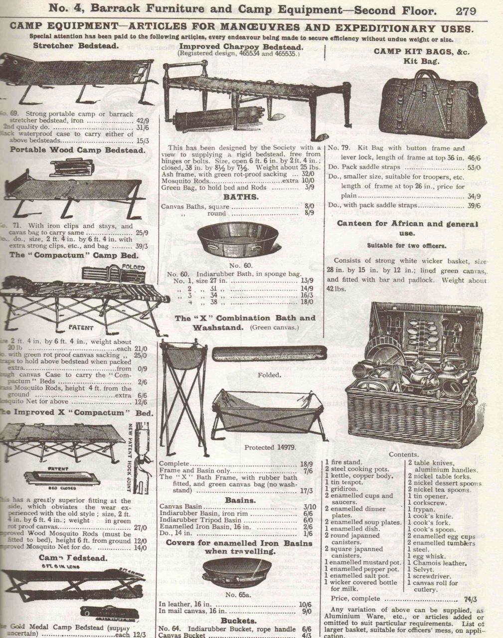 This is a re-post from an earlier entry. Say what you will about British imperial policy of the 19th and 20th centuries. They certainly worked out minimalist travel with a fair amount of style and comfort on a very personal level. These old catalogs give some great ideas for camp living.