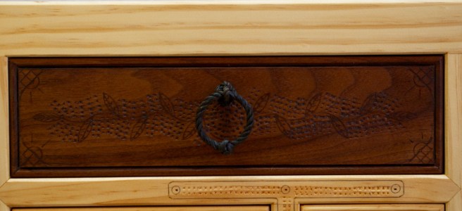 Over the last several days I have been adding the finishing touches to Hillbilly Tansu #3. Primarily, the actual finish. I used several coats of Tried & True Original which is a mixture of polymerised linseed oil and beeswax. I’ll add additional coats over the coarse of the next year or so. I know that sounds like a lot of work, but I like the way the finish looks as well as the non-toxic nature of the finish in both the raw and the cured state. How many finishes do you use that you would let a five year old help you to apply? Once the finish had dried I buffed the entire tansu with synthetic steel wool and a soft cotton cloth.