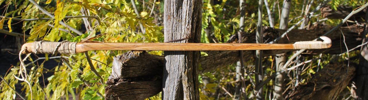 I recently got around to repairing my partner’s atlatl for an upcoming throw at the Landmark. It’s been in use for seven years now and suffered some dings as well as losing it’s wooden hook. The handle is oak and the original cocobolo hook has been replaced with antler which will hopefully last a lifetime.