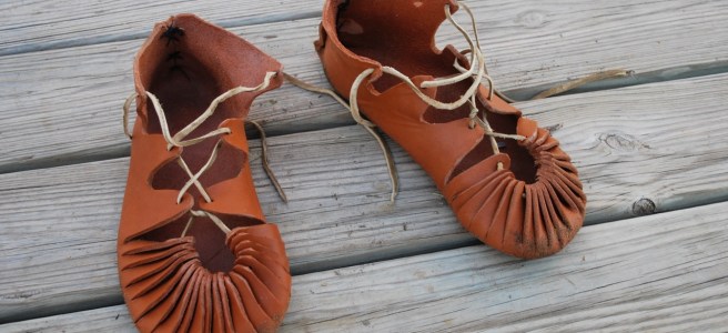 I teach a couple classes about low-tech shoemaking a few times per year in the primitive survival skills community.  The designs I focus on are styles that can be made by one person in one day; a popular theme in early historic examples.  Some require a lot of cutting, some require sewing.  There is an off-grid, neo-Luddite attitude about making your own shoes.  In fact, I think I will register the name Dystopian Leather Works as my new business.  I’m considering a small business venture to go into custom production of the shoes I teach people to make as well as expanding the custom leather work I currently produce.