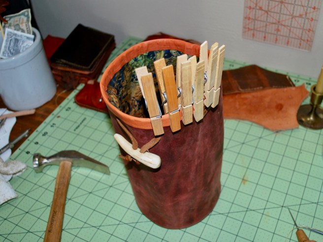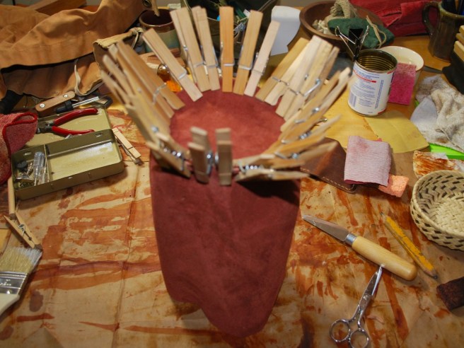 Here is a shop update on a couple of the many leatherworking projects undertaken lately.   I decided to use up all the leather I have been storing and put it to good use.  I have about 100 projects I’d like to make for myself but the Yule season is coming, gifts are expected in many quarters, and we have an invite to show our wares at a local crafts fair.  So, without further fanfare…