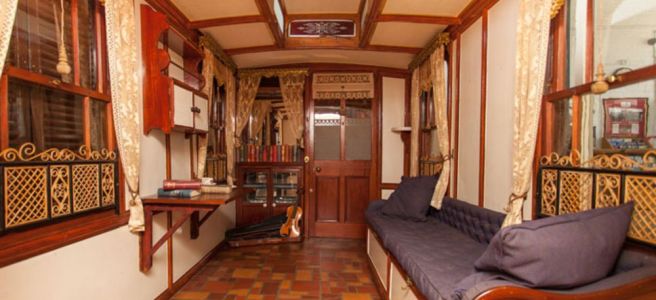 The Wanderer’s flooring choice was a practical one.  Linoleum was a relatively new product but had shown itself to wear well under difficult conditions and remain flexible (perfect for a rolling home). To further beautify the main room, Stables chose a Persian rug to overlay the Linoleum.