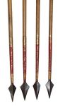| Turkey, 18th–19th centuriesFour military arrows for use with Crimean Tartar bow. Straight wood shafts. Hawk feather fletching, three fletches, radial form, glued on. Bulbous self nocks, painted red on inside of notch. Hand-forged steel broadhead points, ridged at the base and thickened towards the tip; sinew reinforced. Decorated with red and gold paint.