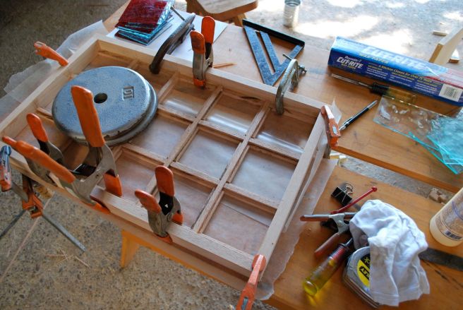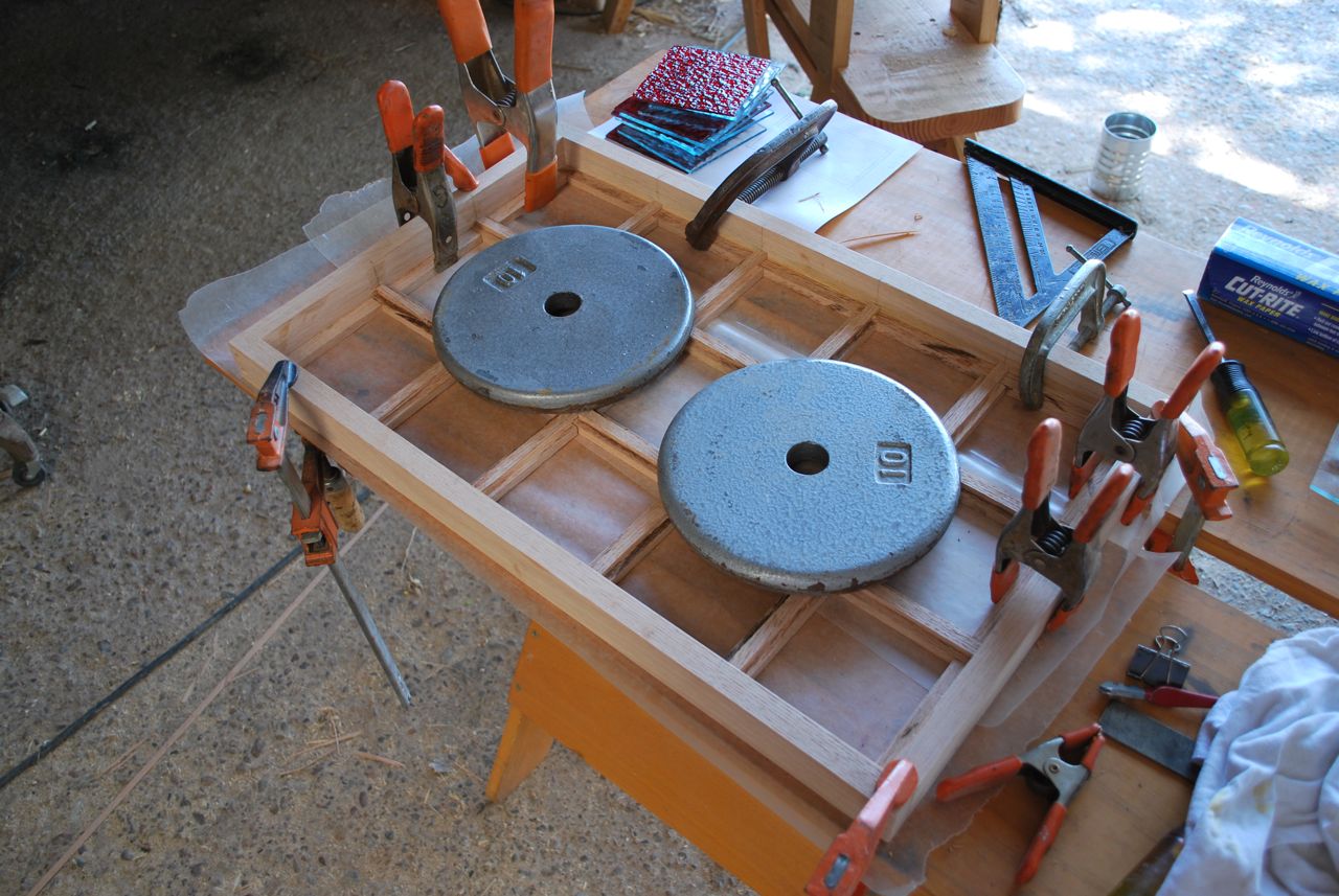 Holding the frames fast while the glue dries.