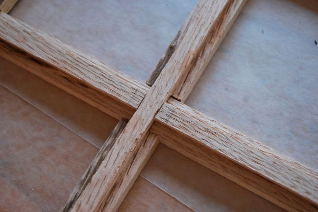 Detail of how the frames cross and interlock. I have never made a window like this so this is what I came up with.