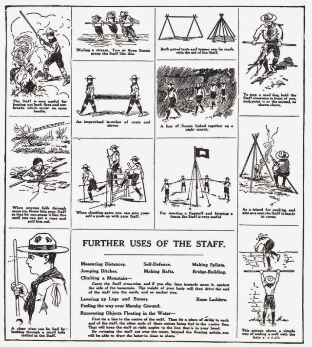 And just for fun, here is a nifty Sketchbook drawing of some uses for the traditional Scout Staff from and artist who goes by “Ishkotekay.”