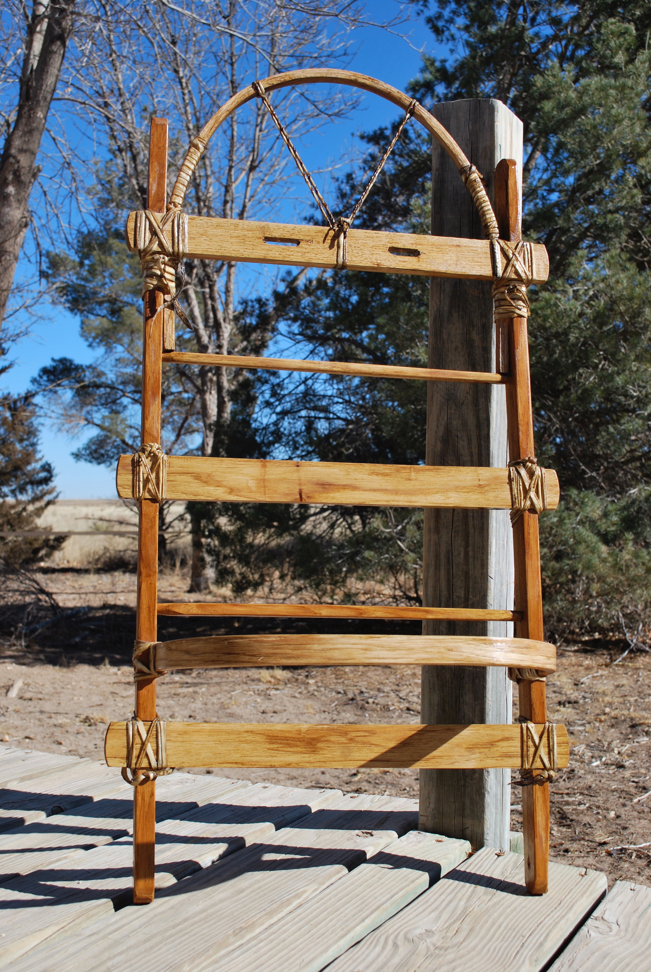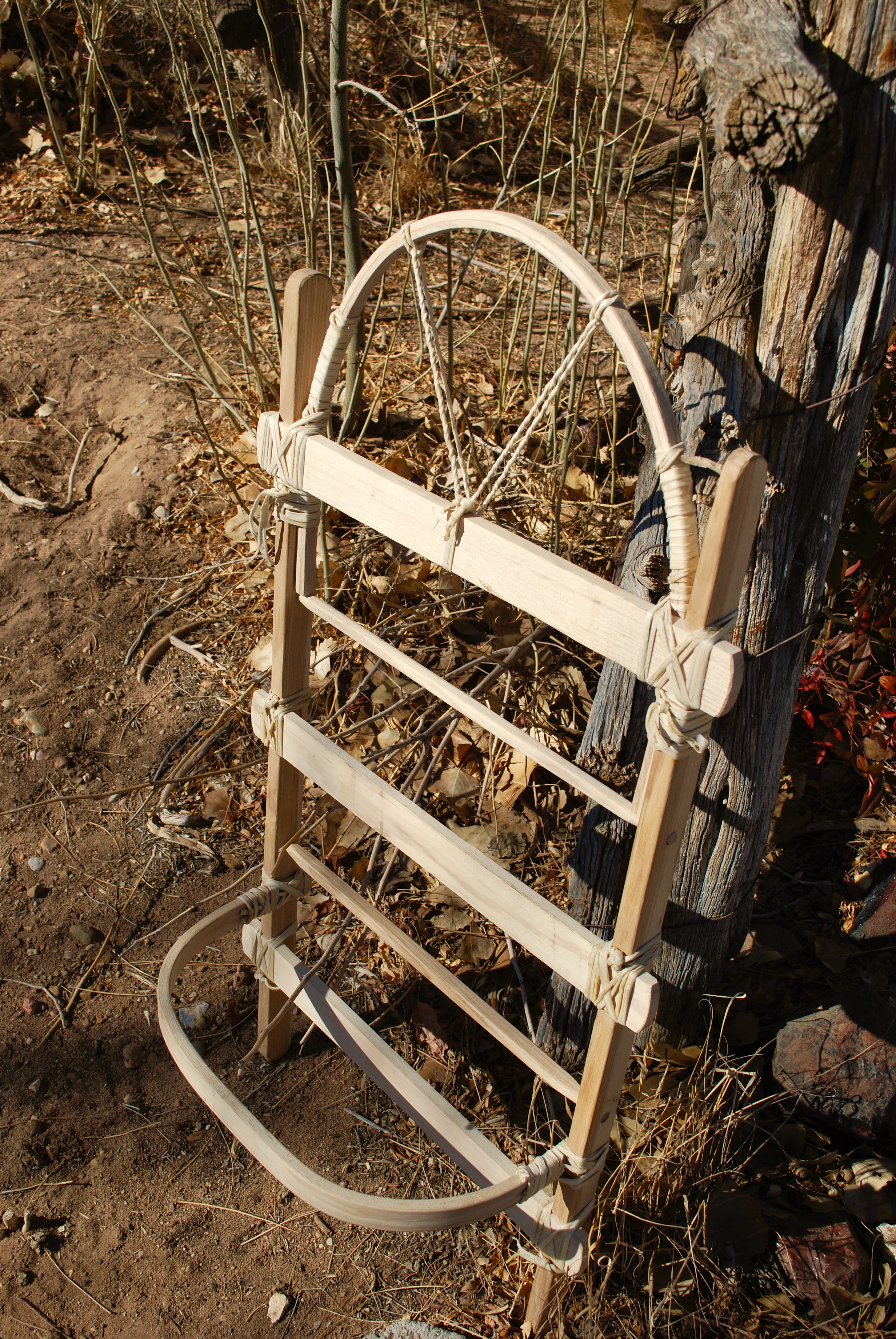 I decided against metal fasteners for the original project so everything was pegged and tied with rawhide.