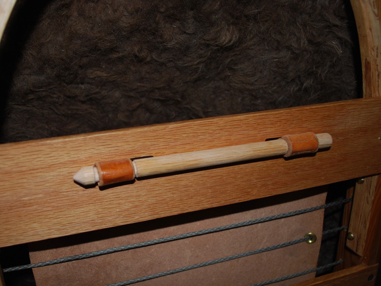 Shoulder strap connection, a whittled oak dowel that is easily removed.