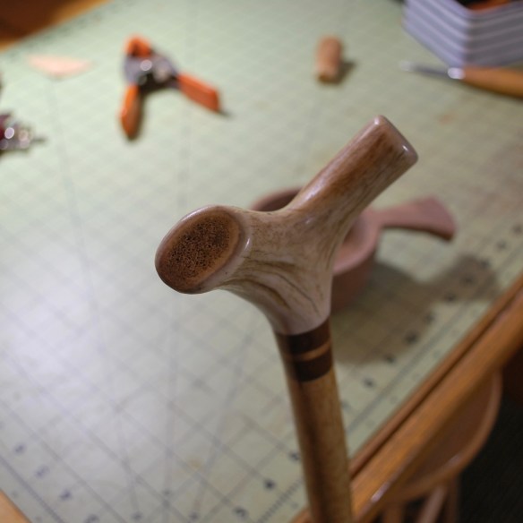 I’ve been carrying this walking stick in one form or another since 2001. What does that mean? I just can’t leave well enough alone, that’s what. It was a straight knobbed staff before attaching the stag horn but I decided it would be more useful and aesthetically pleasing with the fork on top.