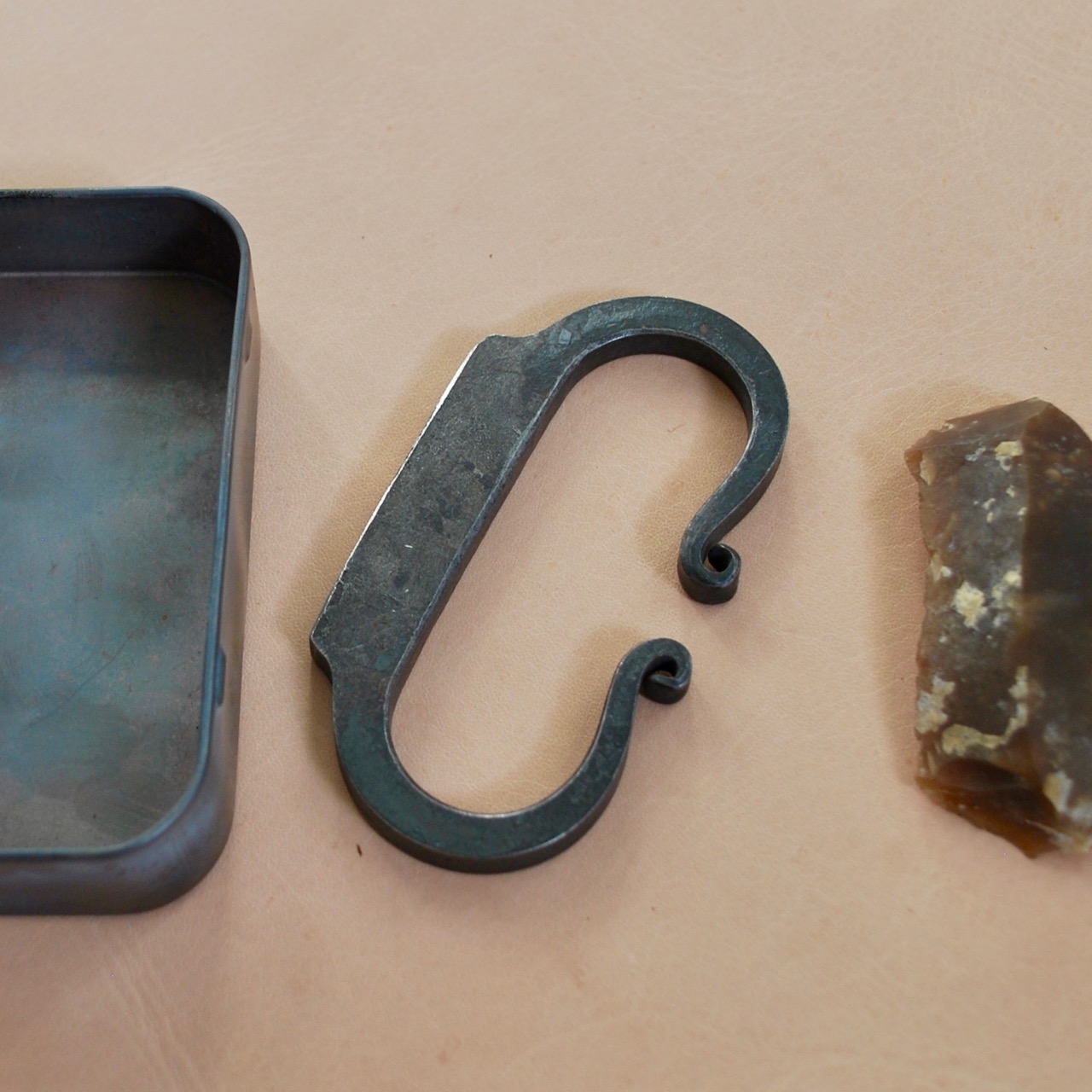 If you aren’t familiar with flint & steel fire-making the tinderbox serves a two-fold purpose; to provide a chamber to make charred tinder and to hold and protect the tinder from moisture over time.