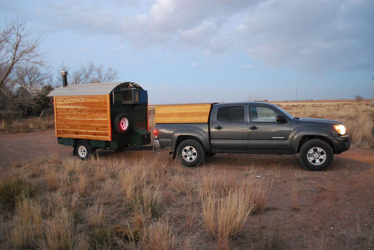Here’s the basic part list that I used: 2x4s for side and front sills, 2×4 frames, tongue and groove yellow pine for sides, front, and hatch, western red cedar roof. Lexan front and rear windows, hinges, closures, and various fasteners to hold it all together. For the roof exterior, 30# tar paper and a canvas truck tarp. The whole thing is varnished with exterior spar varnish. I think the whole thing can be made for a couple hundred dollars as opposed to a couple thousand from the store.