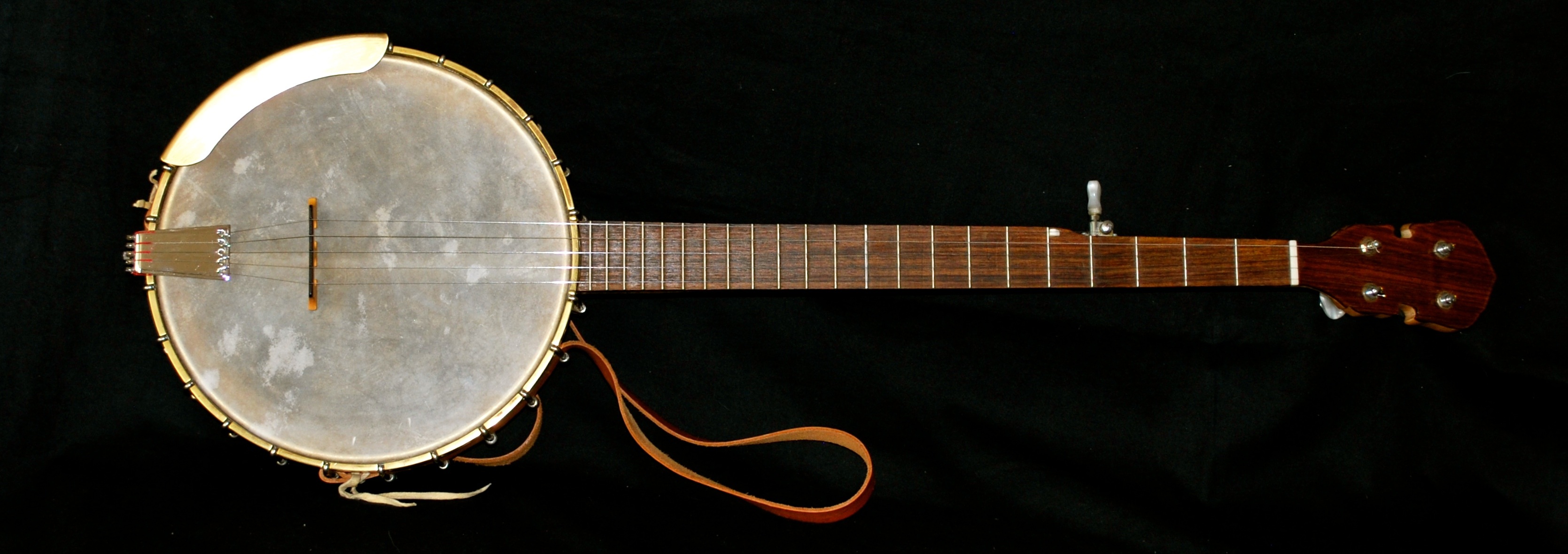 My most recent banjo polished up and fitted with a new calfskin head.