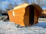 Mike is finishing up his remarkable vardo in the great white north. He included a mollycroft in the roof which not only looks cool but should add a lot of light and headroom. The front storage is accessible from the outside like a sheepherder and it will have an enormous bay window in the front. As it comes along I hope he’ll write up more about the design and construction of the wagon. With this wagon and Jack’s build last year, I think I’ll add a page to the header bar for “other vardos” so that they are easy to find on the blog.