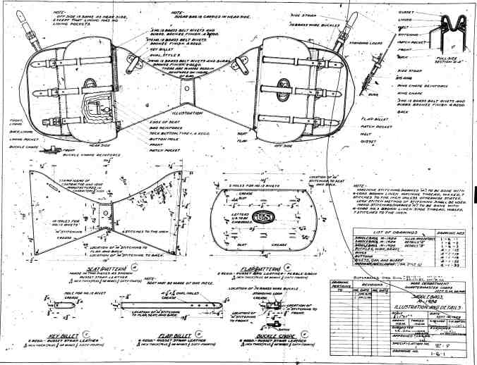 The plans are printable and can be scaled or drafted into patterns to transfer to appropriate leather; latigo or veg tanned. Click the image for a full-screen version. Clicking again should provide oversized, printable versions for easy use and reading.