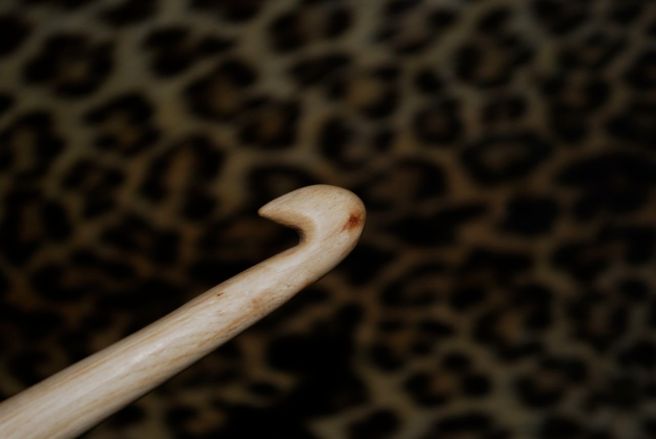 A close-up of the hook. The thrower was burnished with bone to create a nice finish, then coated with walnut oil for protection.