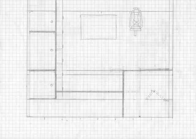 The above design was developed to really nitpick the space, where things would be stored, and how a human or two would fit in various activities. The dimensions are quite accurate in order to estimate necessary lumber.