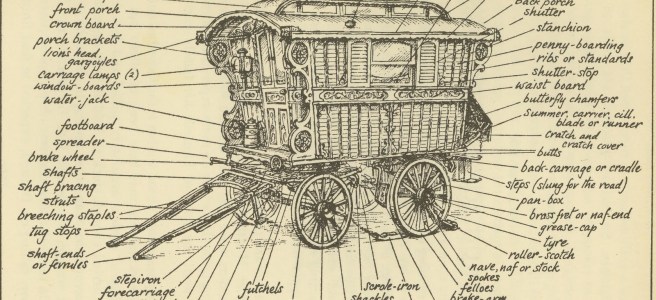 Then, I read the book English Gypsy Caravan: Its Origins, Builders, Technology and Conservation by Cyril Henry Ward-Jackson and Denis E. Harvey. This is an impressive volume documenting the various styles of living wagons from the heyday of caravanning. I thought it would be great to tow something like this behind a truck as my home. It showed the vardo in all it’s glory. Unlike the BenRoys, the “slouchies” and teardrops I had considered the old fashioned “showman” or “Gypsy” vardo a classy look and feel that a woodworker can appreciate and all the amenities of home, even if it is rather small and spartan for modern tastes.