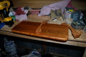 An important feature for me was the ability to travel safely with a Hurricane lantern. I have used these for years and I believe them to be a practical and safe lighting solution. However, they cannot just swing around or be liable to tip over as they will break or spill oil. After pondering this problem for some time, I developed a bracket that holds the lamp in place while still making it easy to remove. The wood is very old recycled oak and the brackets ore old wrought iron fittings.