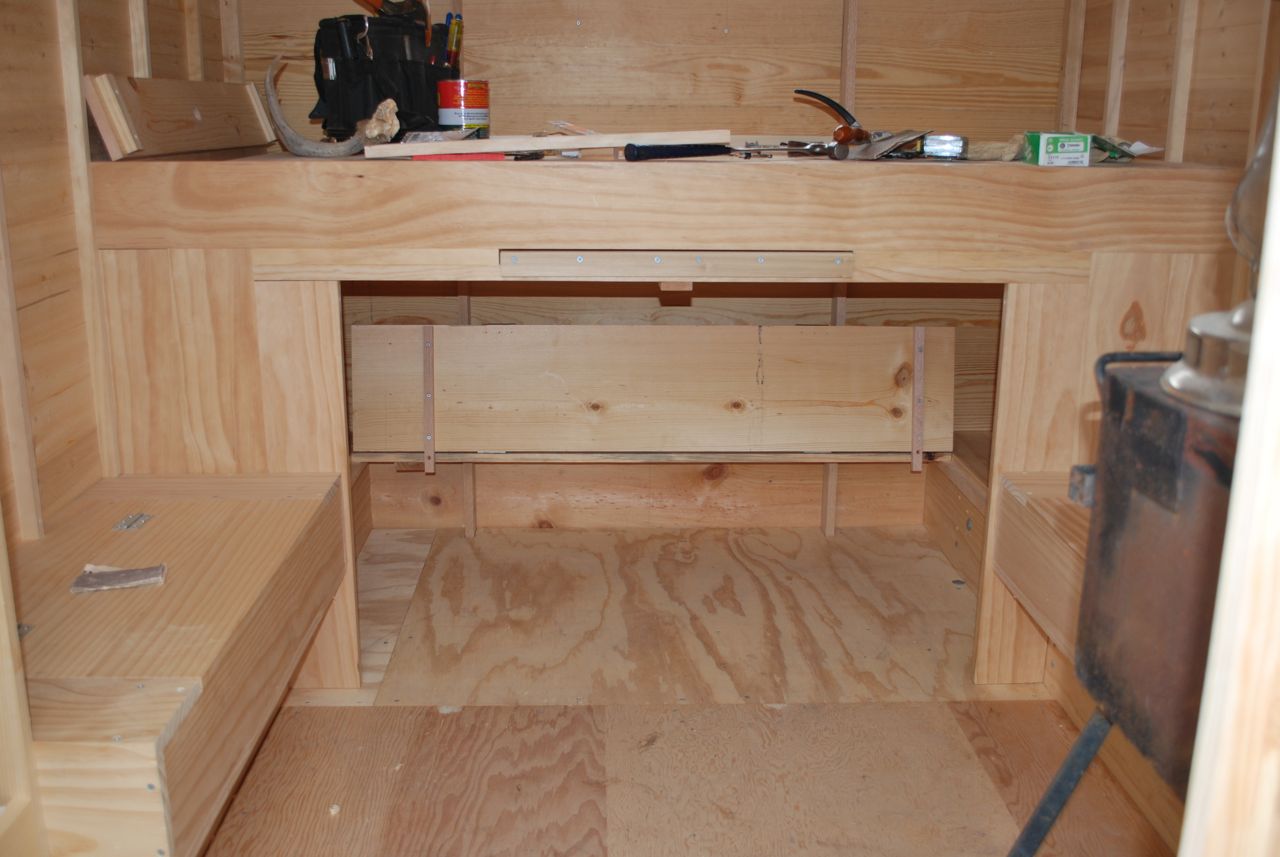 Once the box is closed in something magic happens. You can sit inside and actually imagine the space and how it will function. The bed frame was integral to the entire structure and ties three walls together. The benches and shelves function in the same way to buttress the walls.
