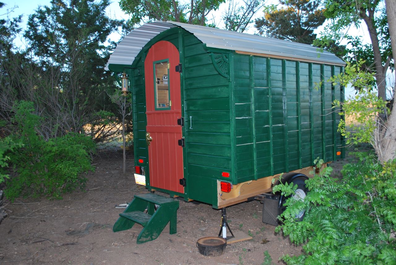 February rolled around and it was time for my annual journey to southern Arizona for the Society of Primitive Technology Winter Count gathering. A six hundred mile drive seemed like a good shakedown cruise for the little wagon. I had no paint, no roofing, and it was mostly unfinished inside but the urge was upon me so I tacked down a heavy canvas truck tarp for the roof and took off.